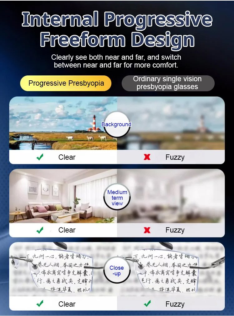 Color-changing anti-blue light presbyopia glasses